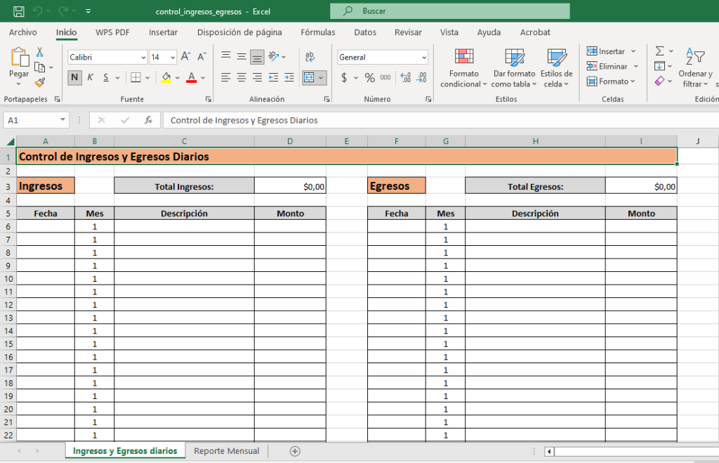 Esta hoja de cálculo permite registrar ingresos y egresos diarios con fechas, descripción y monto. Calcula automáticamente el mes, suma totales y genera un informe mensual con el saldo y el saldo acumulado, ademas incluye graficos que compara ingresos y egresos.